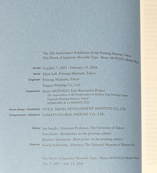 日本の近代活版印刷の礎を築いた本木昌造の2003年に行われた展覧会の図録です。