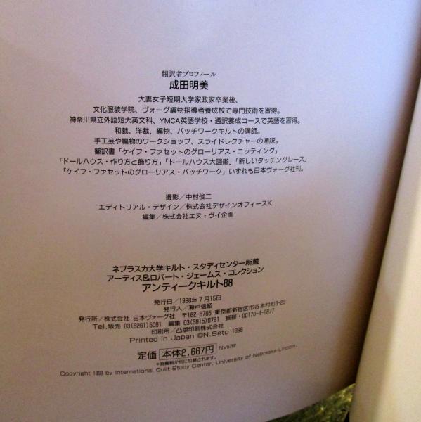 アンティークキルト88 : ネブラスカ大学キルト・スタディセンター所蔵アーディス&ロバート・ジェームス・コレクション