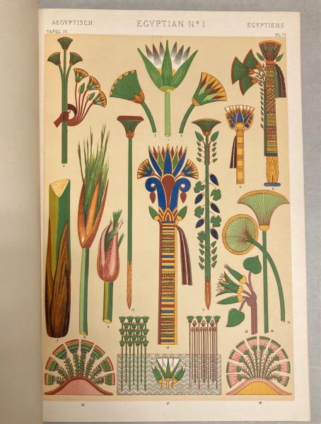 • 解説 Illustrated by examples from various styles of ornament ; One hundred and twelve plates エジプト、アッシリア、ギリシャ、ポンペイ、ローマ、ビザンティン、アラビア、トルコ、アルハンブラ、インド、中国、ケルト、中世、ルネサンス、エリザベス朝、イタリアの文様