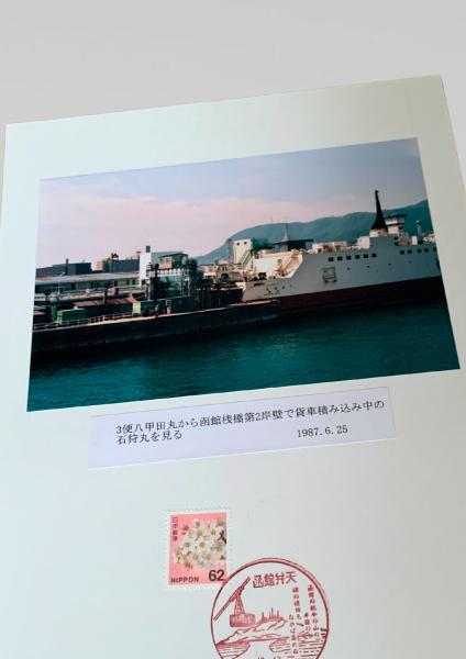 3便八甲田丸から函館桟橋第2岸壁で貨車積み込み中の石狩丸を見る(1987年6月25日)