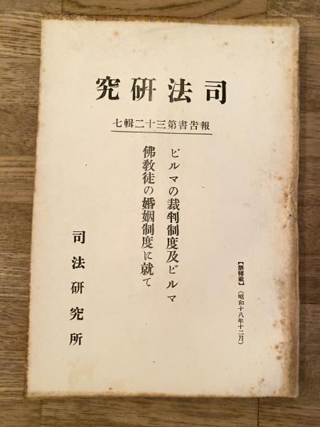ビルマの裁判制度及ビルマ佛教徒の婚姻制度に就て <司法研究報告書>