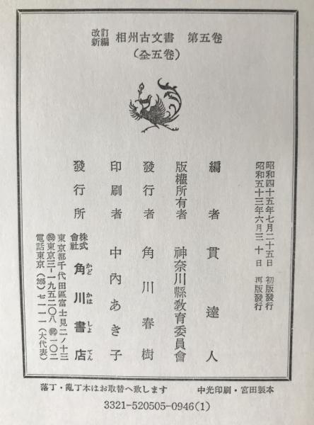 相州古文書 : 改訂新編 5冊揃え 第1巻-第5巻 4版-再版