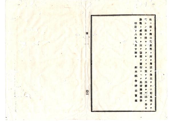 • 解説 N25101142○明治布告布達○天変地異不慮の災害疾病事故不時の出費に備え 郵便局預金所増設 貯蓄実行すべし 栃木県令樺山資雄○明治18年 栃木県布達○和本古書古文書