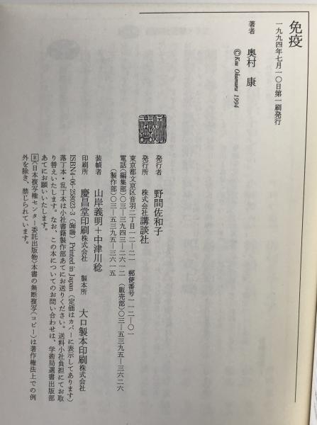 免疫 : 生体防御のメカニズム <講談社選書メチエ 23> 第1刷