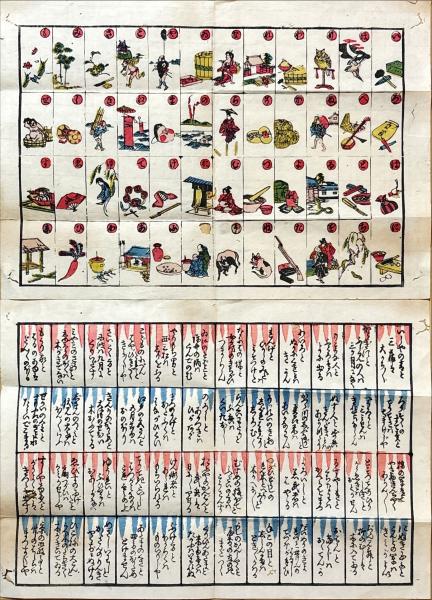 • 解説 袋付(双六をする子供の図 虫損有) 合羽摺 少虫