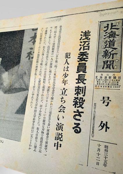 北海道新聞 1960年10月12日号外 浅沼稲次郎 刺殺 事件 山口二矢 社会党委員長