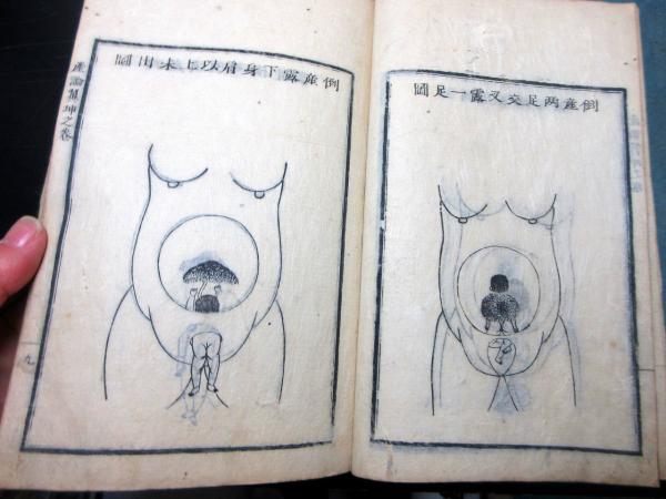 • 解説 和本江戸安永4年(1775)賀川流産科医学「産論翼」乾坤2冊揃い/賀川玄迪/絵入古書古文書/木版摺りです。