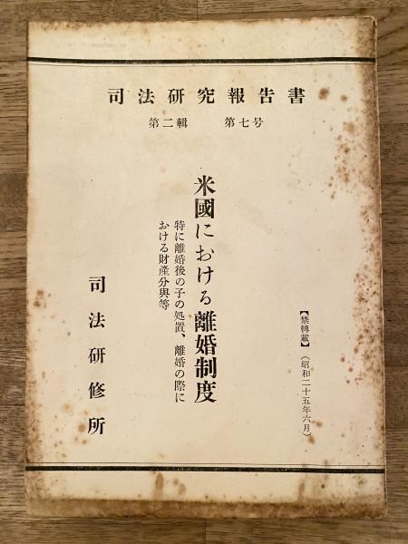 米国における離婚制度 : 特に離婚後の子の処置,離婚の際における財産分与等 <司法研究報告書 ; 第2輯 第7号>