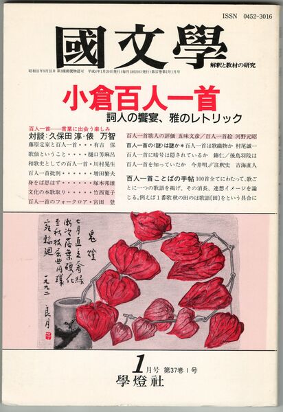国文学 解釈と鑑賞 平成04年01月号 小倉百人一首 詞人の饗宴、雅のレトリック