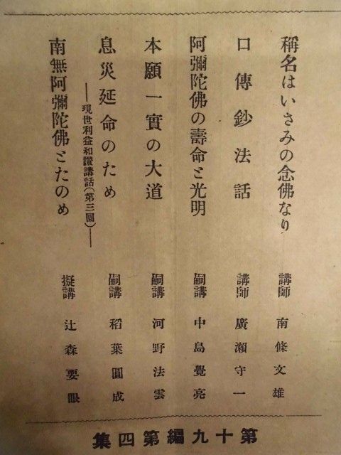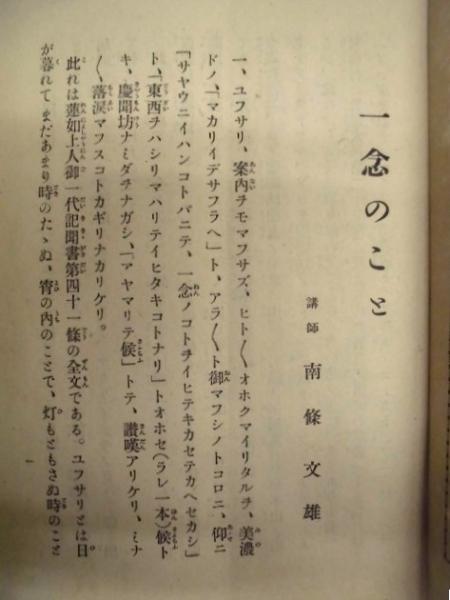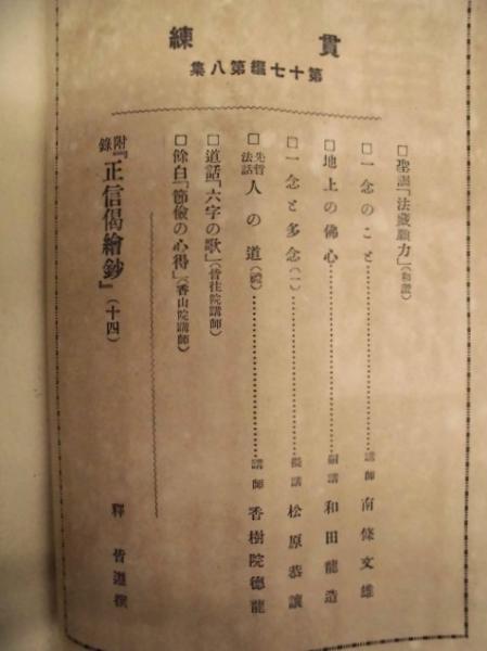 • 著者 「目次」より:[第14編第5集]・念佛申さるべし…易行院法海 ・正信偈法話…齋藤唯信 ・有名無実…舘登 ・胆大心小…住田智見 ・護法物語…菅原法嶺 ・爐のほとりで…岩見護 [第19編第8集]・智慧の光明…中島覚亮 ・初夏の比叡山…住田智見 ・息災は念佛の徳なり…稲葉圓成 ・執持鈔講話…藤塚智秀
