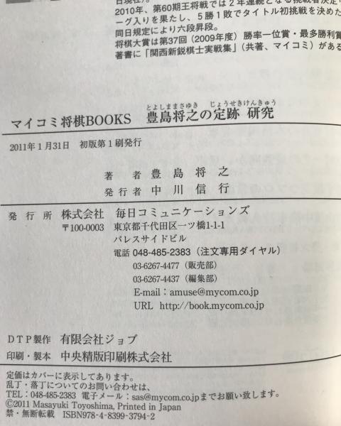 豊島将之の定跡研究 <マイコミ将棋books> 初版第1刷
