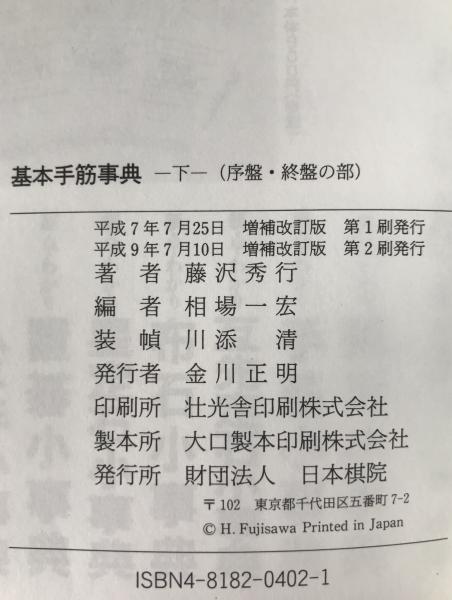 基本手筋事典 2冊揃え 上巻 (中盤の部)、下巻 (序盤・終盤の部) 増補改訂版. 第4刷、第2刷