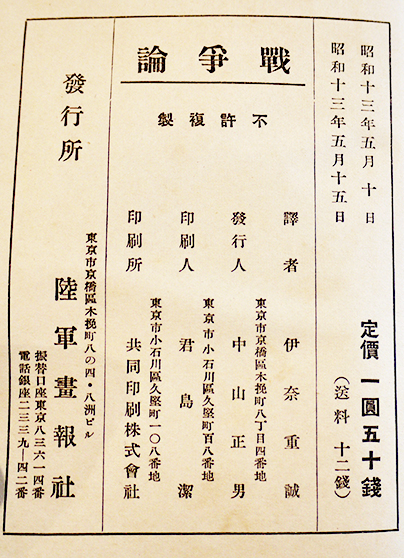 戦争論-戦争の原則とその指導 フォッシュ元帥著/伊奈重誠訳 B6判372p 陸軍画報社 昭和13年