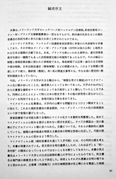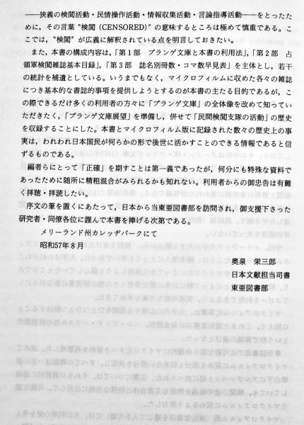 占領軍検閲雑誌目録・解題-昭和20年〜24年- メリーランド大学蔵 奥泉栄三郎編 雄松堂書店 昭和57年