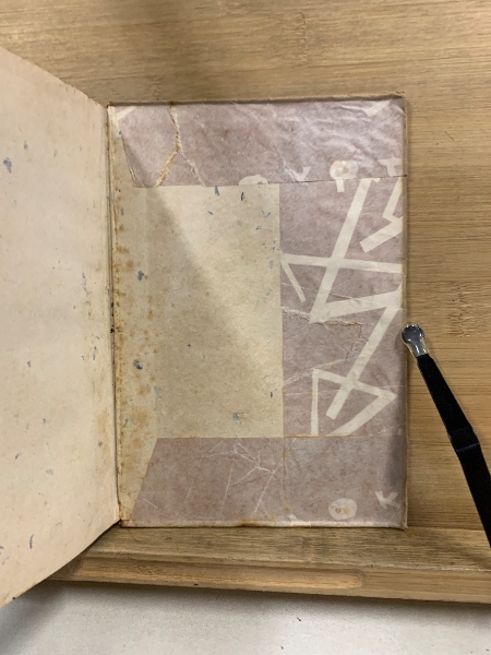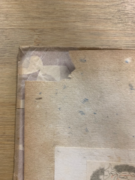 • 解説 パラフィン紙貼付け、その上にタイトル書込み、破れ、ヤケ