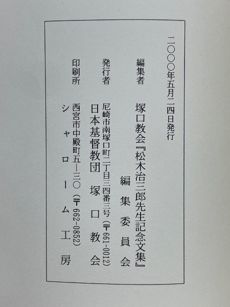 • 著者 塚口教会「松木治三郎先生記念文集」編集委員会 編