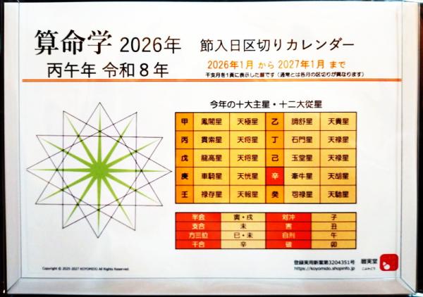 2026年 算命学卓上カレンダー(節入日区切りカレンダー)