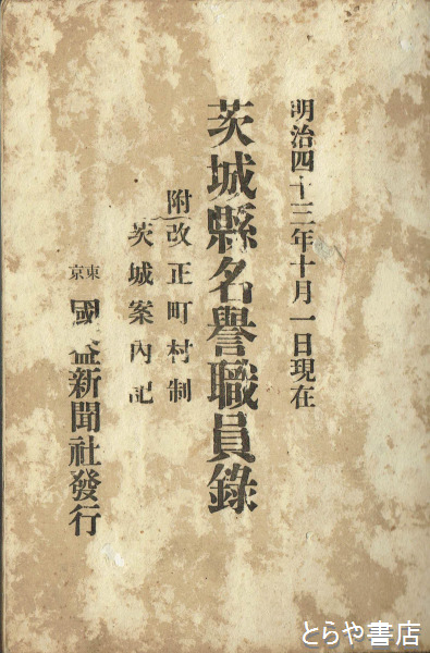 茨城県名誉職員録 明治43年10月1日現在 附改正市町村制 茨城案内記