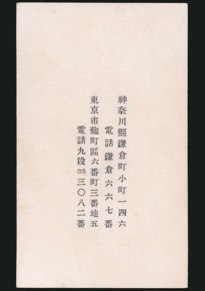 里見弴(山内英夫) 名刺 久米正雄宛