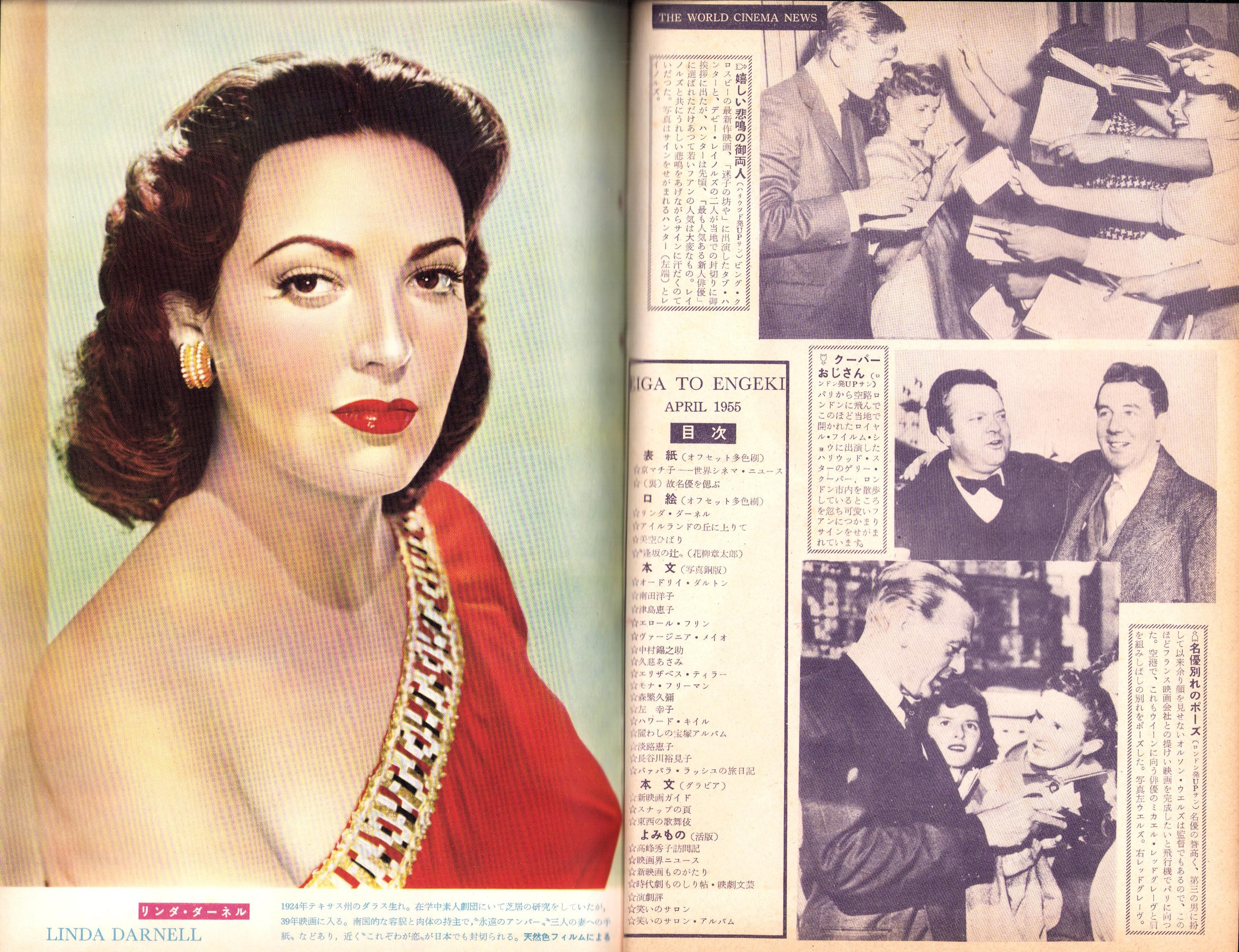 • 著者 〈美空ひばり、花柳章太郎、リンダ・ターネル、各カラー1頁〉〈南田洋子、津島恵子、中村錦之助、久慈あさみ、森繁久弥、左幸子、淡路恵子、長谷川裕見子、オードリイ・ダルトン、エロール・フリン、ヴァージニア・メイオ、エリザベス・ティラー、モナ・フリーマン、ハワード・キイル 各モノクロ1頁〉
