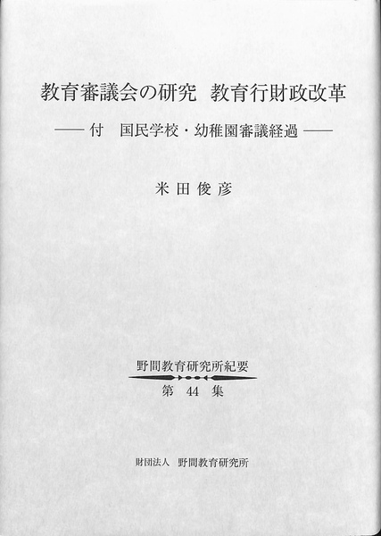 教育審議会の研究 教育行財政改革 付 国民学校・幼稚園審議経過 野間教育研究所紀要第44集