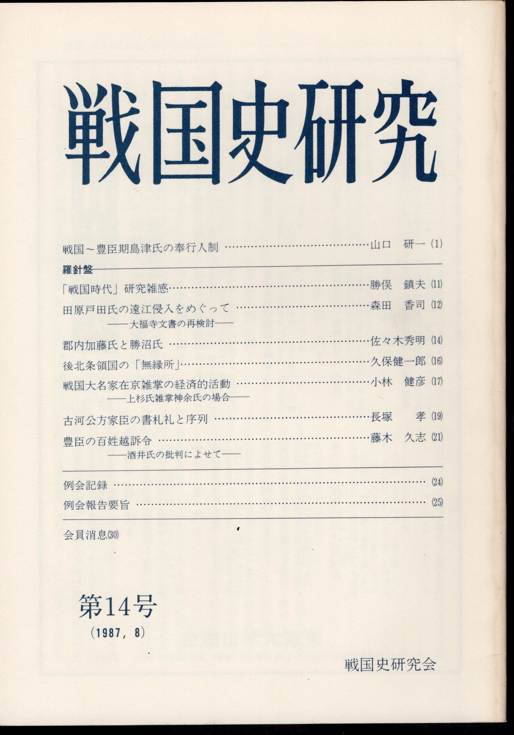 戦国史研究 第14号