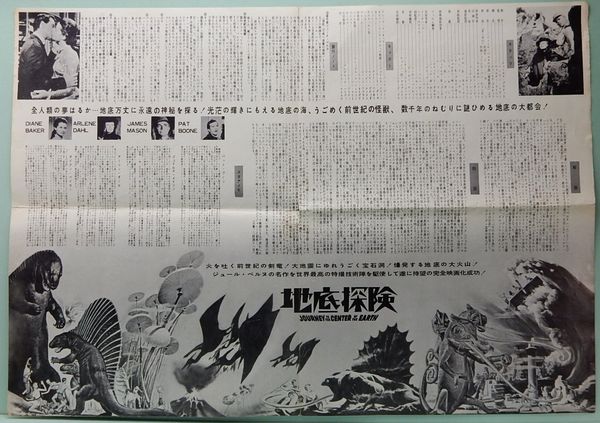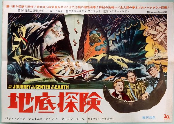 • 解説 【●「Journey to the Center of the Earth」 ●原作:ジュール・ベルヌ、監督:ヘンリー・レビン、出演:パット・ブーン/ジェイムス・メイソン/アーリン・ダール/ダイアン・ベーカー】一枚紙、52cm x 36.7cm、四つ折り、状態:ツカレと汚れ有り、折り目に痛み有り、中心に切れ(3cm)と複数の外れかけている破れ(2cm/8mm)、上下折り目に切れ(3cm/3.5cm)、中心下端に微少欠落、右端折り目に切れ(2.5cm)  ◎配送荷姿:四つ折り