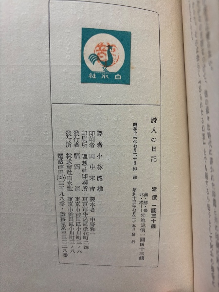 詩人の日記 初版