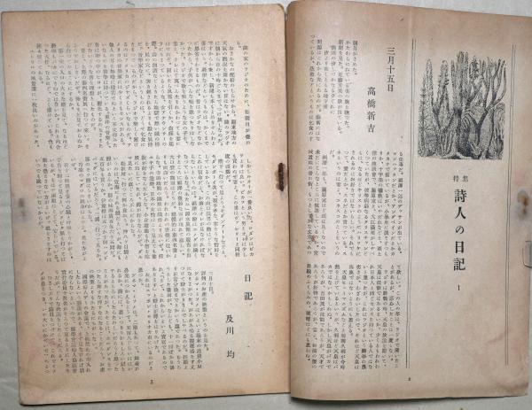 • 解説 特集:詩人の日記:北川冬彦・高橋新吉他 「千家元麿追悼」草野心平 本体経年ヤケ 送料:250円(クロネコゆうパケット便)