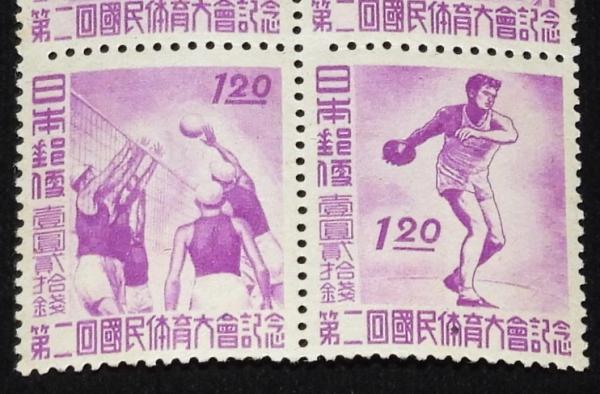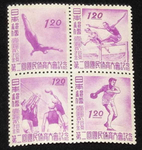 【切手】第2回 国民体育大会記念 4枚組 日本郵便 昭和22年/国体/壹円貳拾銭