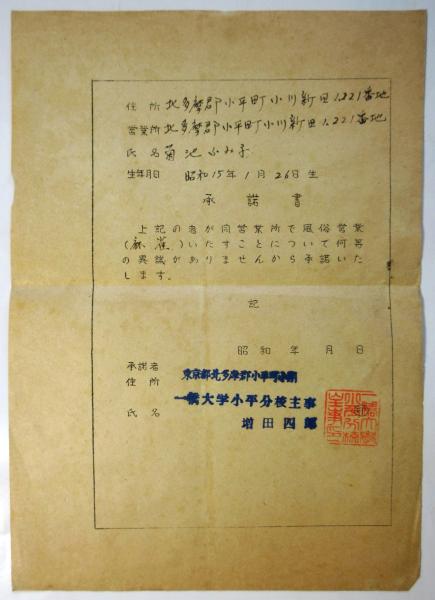 一橋大学小平分校の承諾書