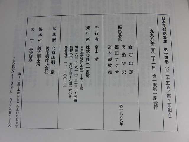 日本民俗誌集成 第14巻 近畿編2 三重県 奈良県