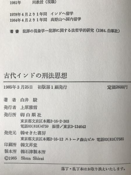 古代インドの刑法思想 初版第1刷