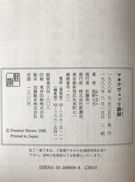 マキアヴェッリ語録 2刷