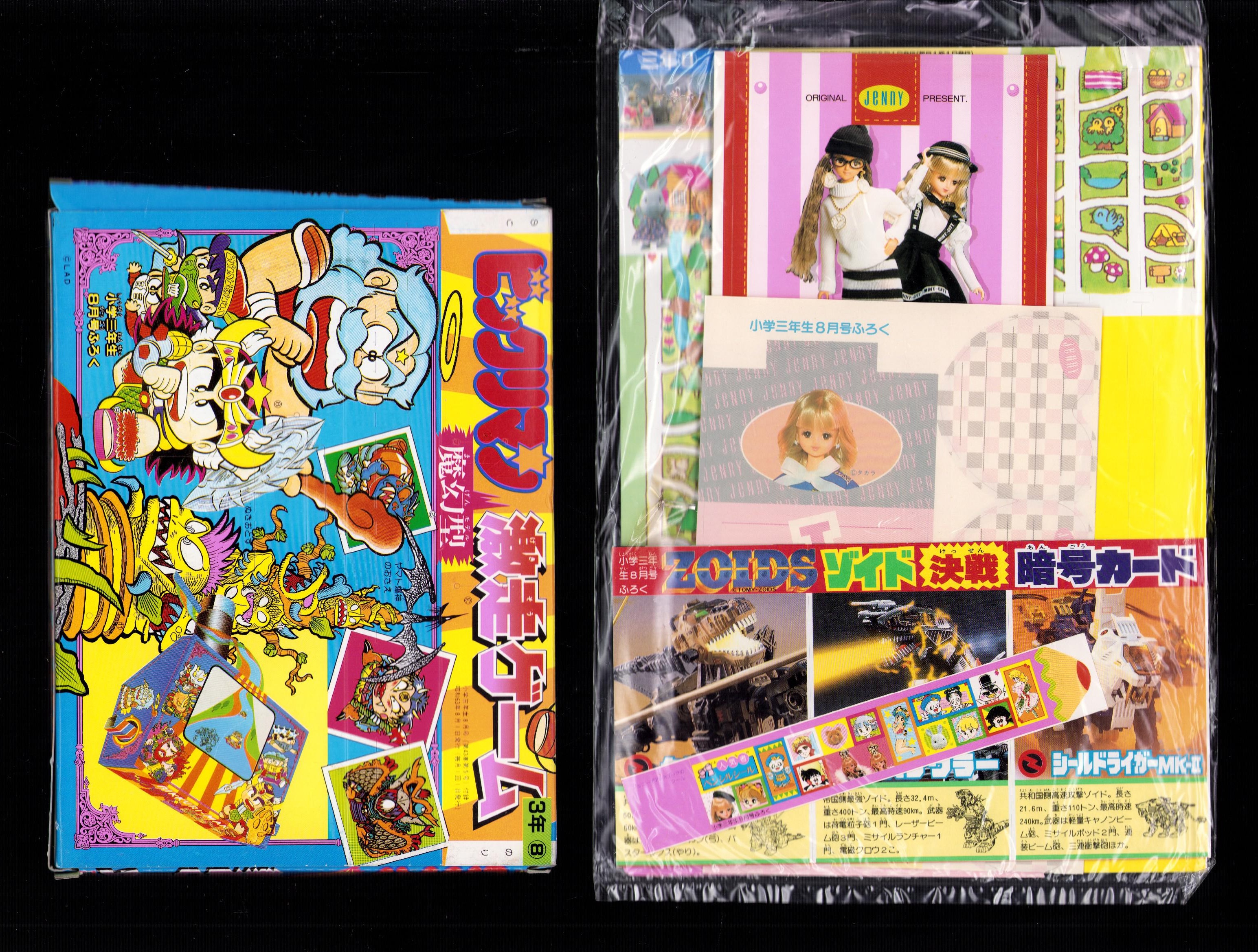 (付録)ビックリマン激走ゲーム/ゾイド決戦暗号カード/ジェニーアドレスブックほか 4点一括 -小学三年生昭和63年8月号付録-