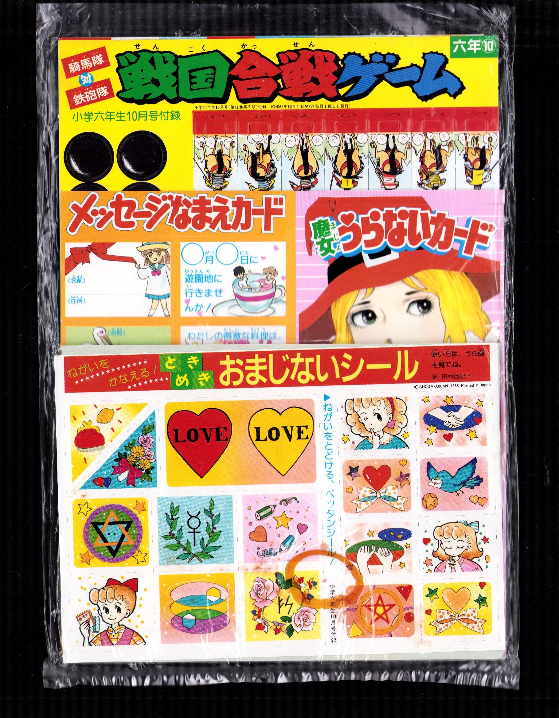 (付録)騎馬隊&鉄砲隊戦国合戦ゲーム/魔女うらないカード/メッセージなまえカードほか 5点一括 -小学六年生昭和63年10月号付録-
