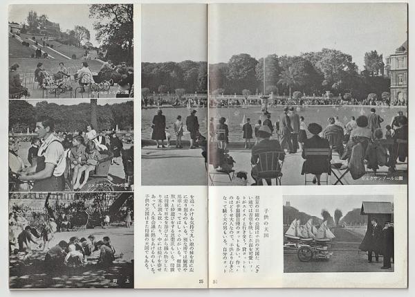 • 解説 重版 端痛み 64頁冊子 写真約135点  -灰色の冬、三月と子供、春の通り、花のパリ、マロニエの咲く頃、カフェ人種、道路劇場、パリの大学生、ある晴れた日に、騒ぎ好き、子供の天国、水に遊ぶ、ルーヴル宮、美術の都、七月十四日、踊るパリ、光と闇の詩、車さまざま、メトロ、食べ物市場、裏通りの哀愁、モンマルトルの裏道、丘の画家、落葉の季節、焼栗の香り、日光を惜しむ、晩秋のセーヌ、冬ふたたび