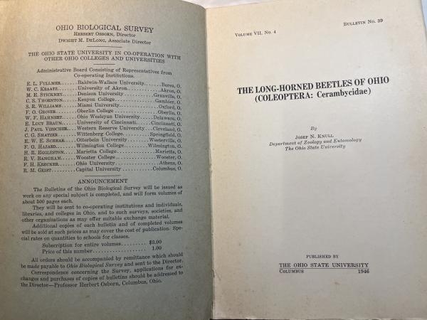 The Long-Horned Beetles of Ohio (Coleoptera:Cerambycidae)    OHIO BIOLOGICAL SURVEY BULLETIN 39 (Vol.Ⅶ, No.4)