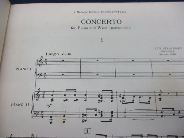 輸入楽譜/ピアノ譜 連弾/ストラヴィンスキー/ピアノと管楽器のための協奏曲/stravinsky/concerto for piano and wind instruments/boosey&hawks/大きさ縦約30cm×横約23cm/62P/