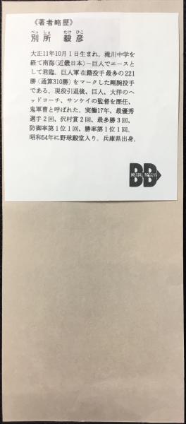 〈野球選手直筆サイン紙片〉別所毅彦