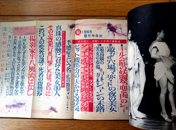 【マル秘(昭和40年9月号)】「キル会館の妖麗な血と肉のショー」「高級美人喫茶ガールの生活ウラの裏」等