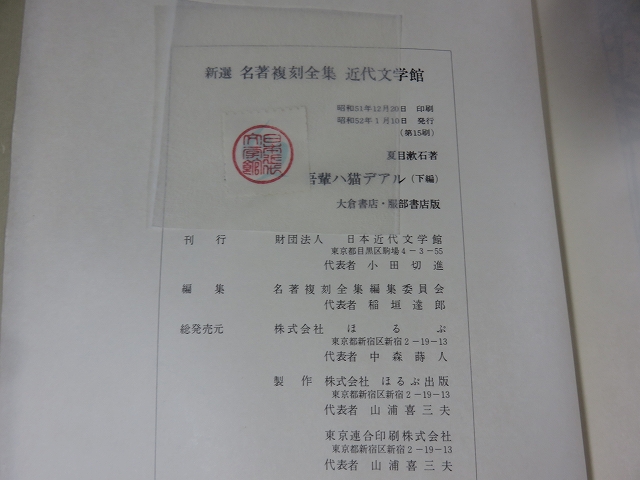 吾輩ハ猫デアル(上編・中編・下編) 新選 名著複刻全集 近代文学館