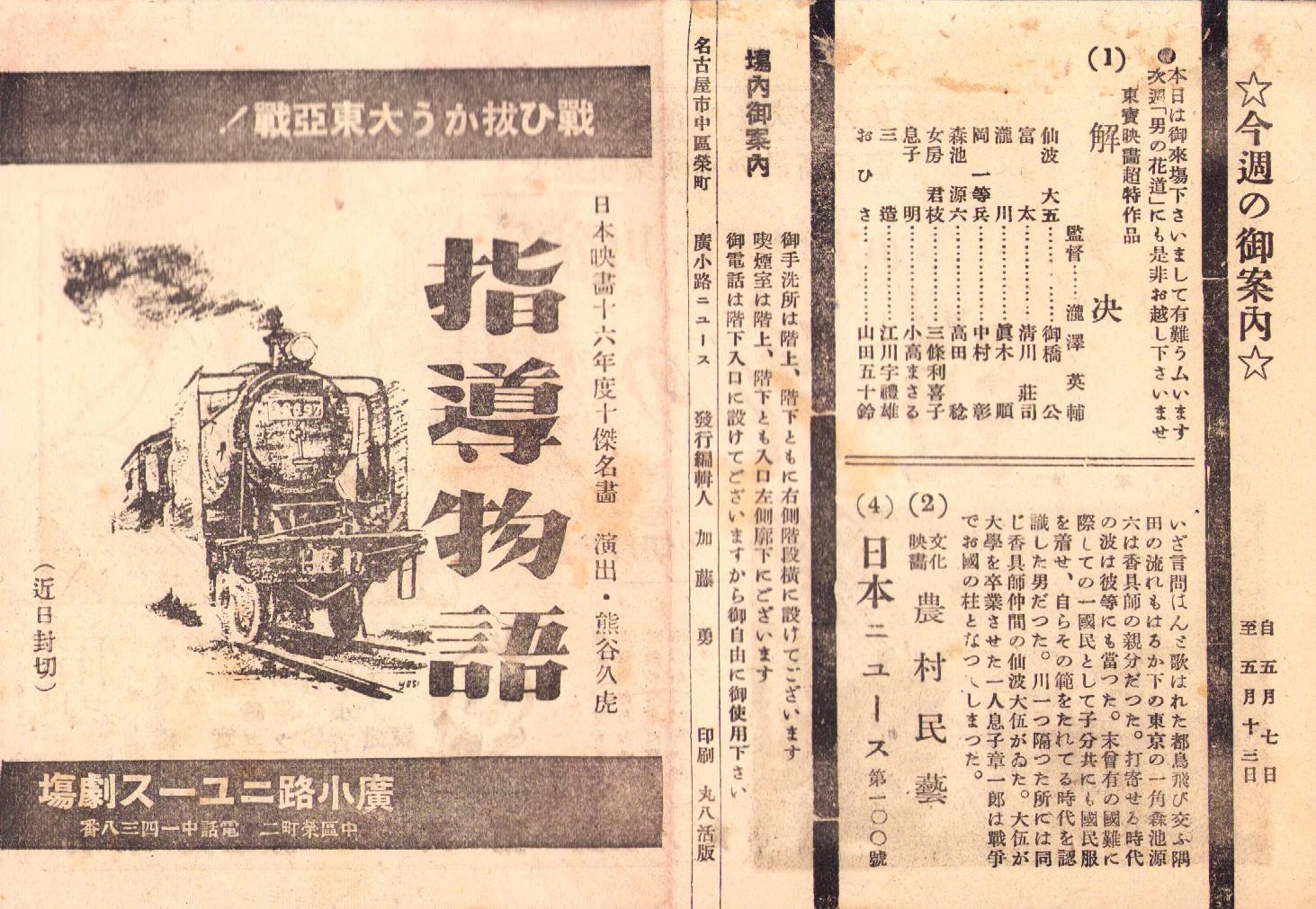 (映画チラシ)広小路ニュース劇場「男の花道」 -昭和16年-(名古屋市)