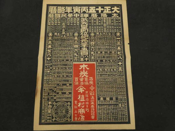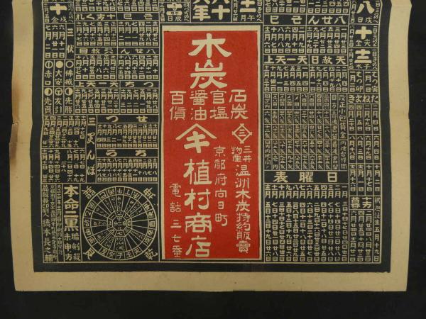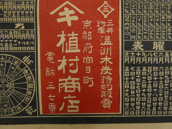 8 5 引札 略暦 大正15年 木炭石炭官塩醤油百貨 京都府向日町 植村商店 石版2色刷 約53×37cm