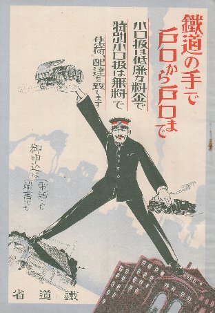鉄道の手で戸口から戸口まで 小口扱は低廉な料金で特別小口扱は無料で集荷配達を致します