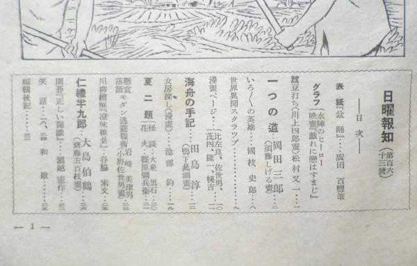 水陣のヒーロー 蚕豆打ち/松村又一・川上四郎画 一つの道/岡田三郎・須藤しげる画 いろいろの英雄/国枝史郎 世界異聞スクラップ 漫画ページ 海舟の手記/田島淳・鴨下晁湖画 夏二題/怪談・大島黒石 花火・篠原弥兵衛  仁礼半九郎/大島伯鶴・斎藤五百枝画 他