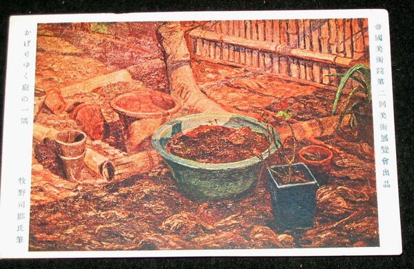 牧野司郎 かげりゆく庭の一隅 第2回帝國美術院展覧会(絵葉書)1枚