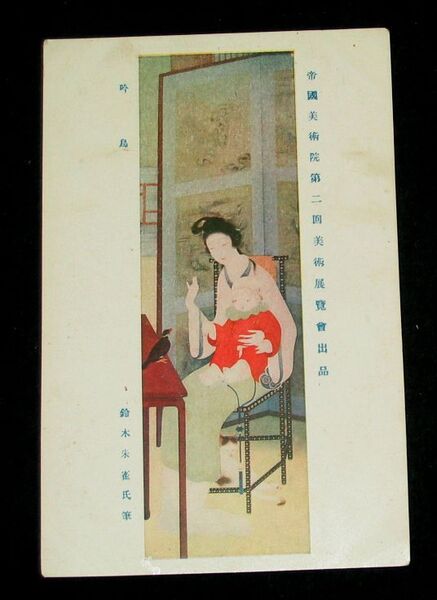 鈴木朱雀 吟鳥 帝國美術院第2回美術展覧会(絵葉書)1枚