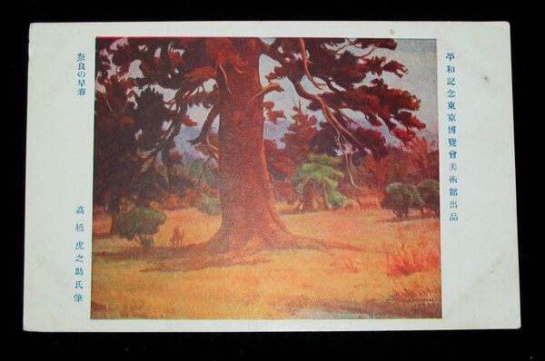 高橋虎之助 奈良の早春 平和記念東京博覧会美術館出品(絵葉書)1枚