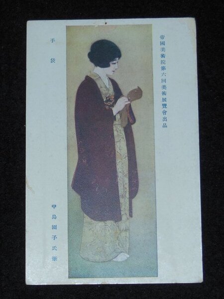 中島園子 手袋 第6回帝国美術院展覧会(絵葉書)1枚